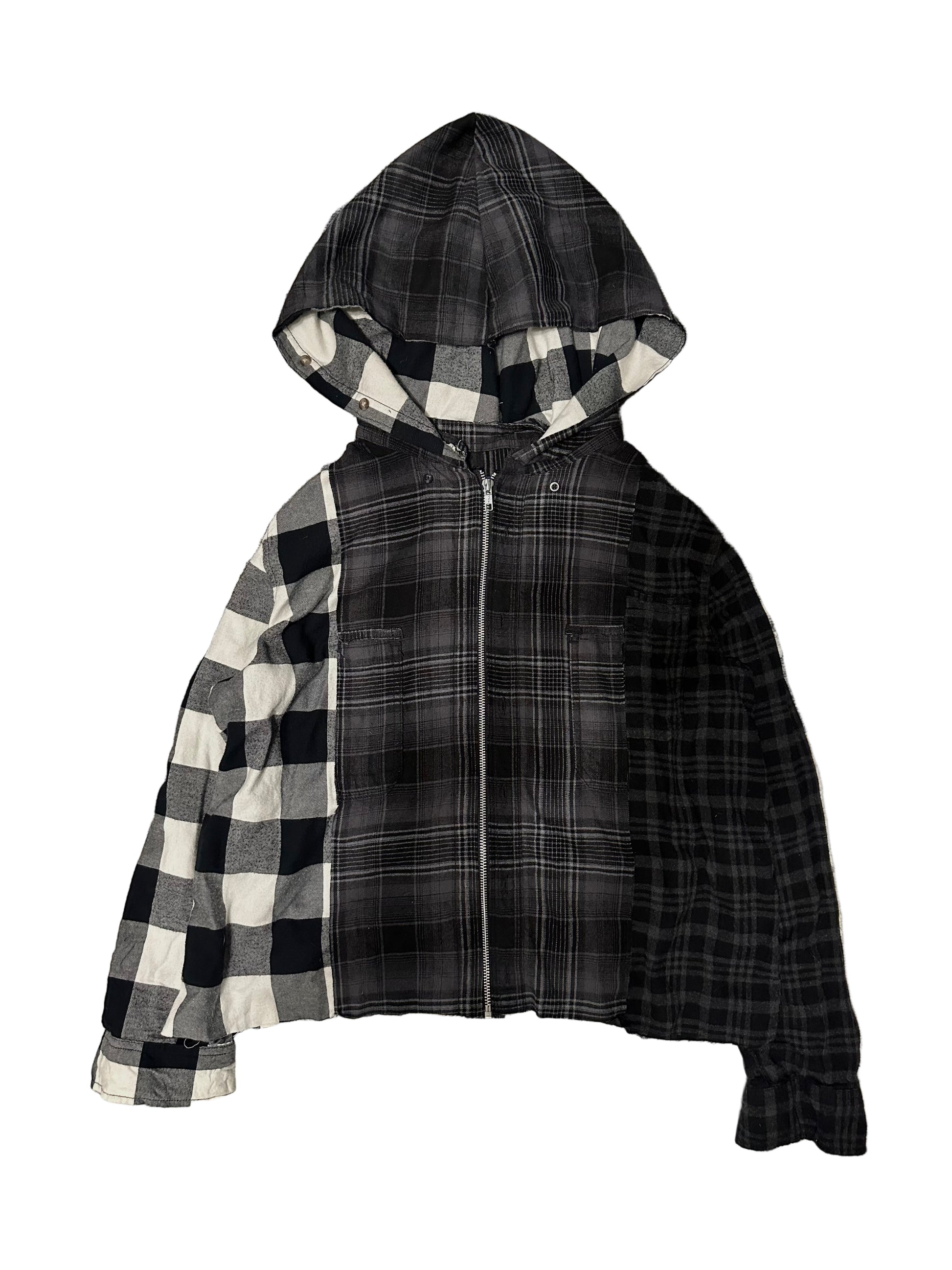 1 of 1 upcycled multicolor flannel hoodie